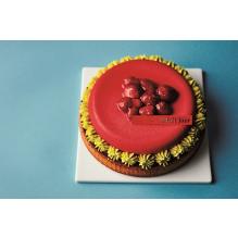 マスカルポーネムースの中にミックスベリーソースを詰めたハートの形のケーキ。 ベリーの周りをロリオリ365 by アニバーサリーらしいお花のモチーフで飾り、 春らしさ満点。