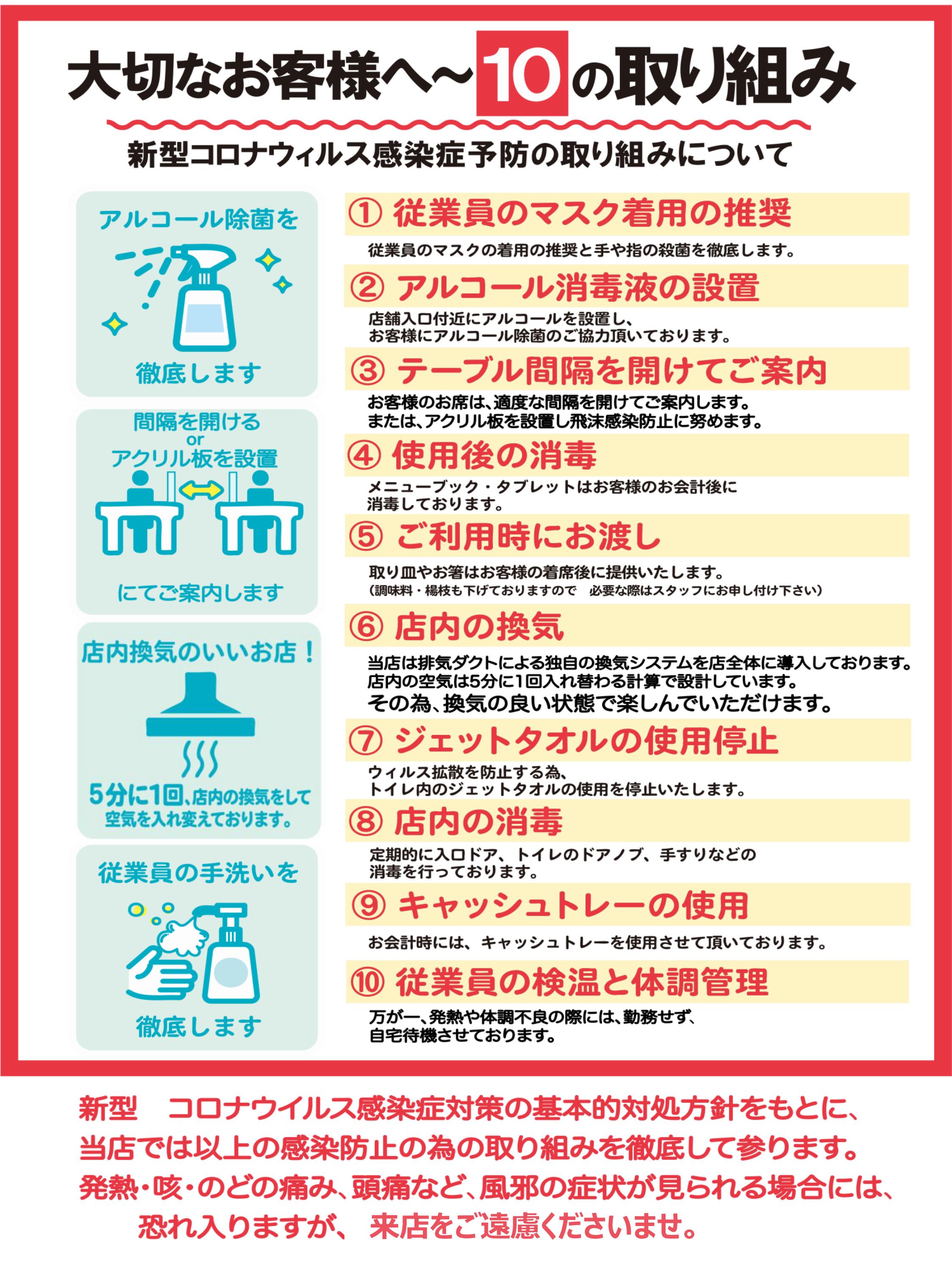 新型コロナウィルス感染予防のための 「大切なお客様へ10の取組み」