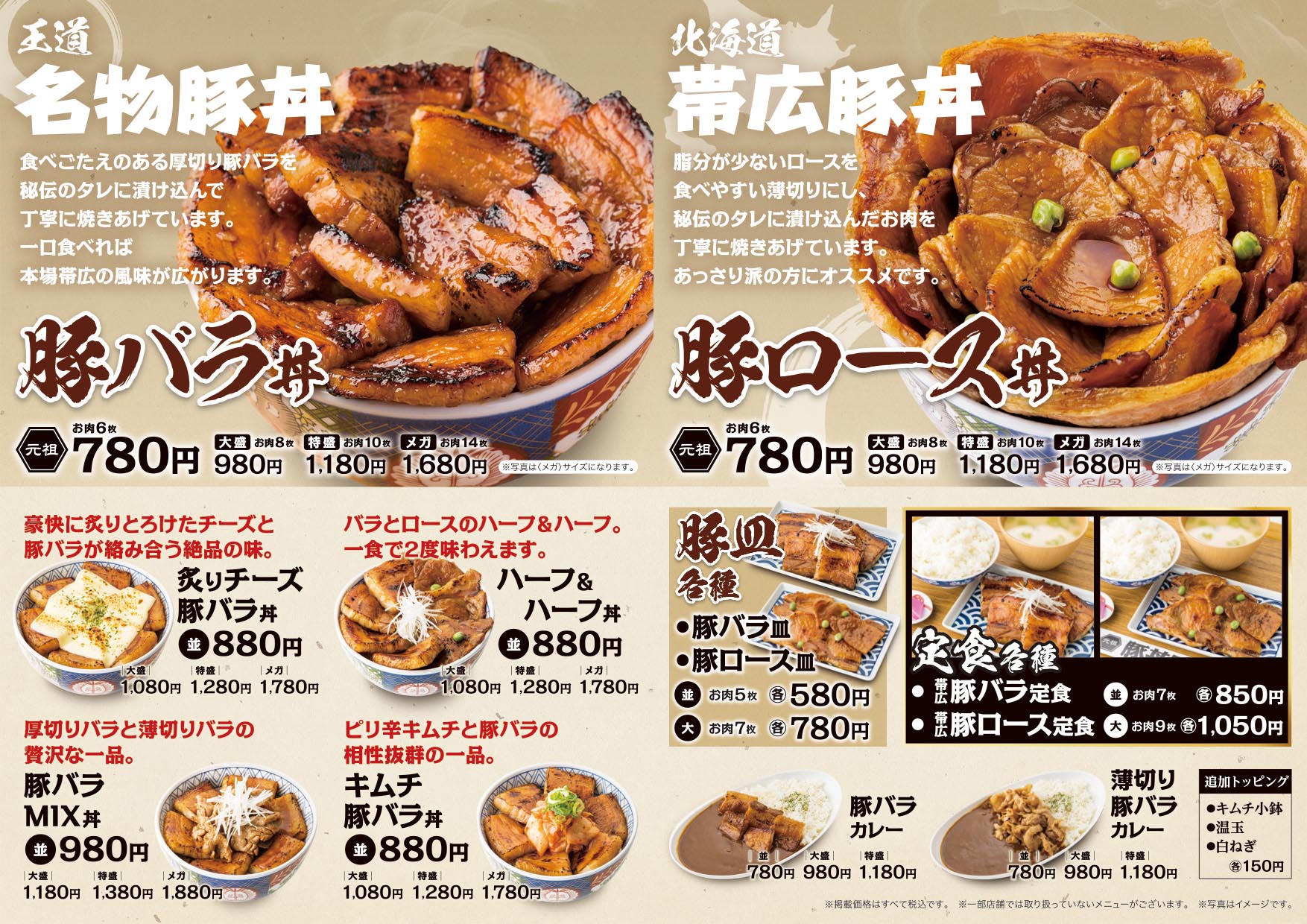 【豚丼とそばのセットメニューなど、上新庄店限定メニューが盛り沢山!】